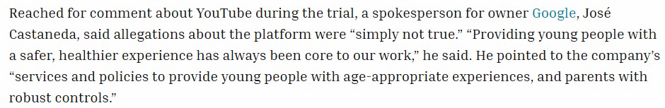 « Meta will have to pay $4.2 million in damages, including compensatory and punitive damages, and YouTube $1.8 million. This landmark case was brought by a young woman, now 20 years old, identified as K.G.M. She accused social media platforms of creating products as addictive as tobacco or online casinos. Citing features such as infinite scrolling and algorithmic recommendations, K.G.M. » She sued Meta, the owner of Instagram and Facebook, and YouTube (Google), claiming they were responsible for her anxiety and depression. TikTok and Snap both reached an undisclosed settlement with the plaintiff before the trial began. “We respectfully dispute the verdict and are exploring our legal options,” a Meta spokesperson said. Google also expressed disagreement with the verdict and its intention to appeal. “This case demonstrates a misunderstanding of YouTube, which is a responsible streaming platform, not a social network,” said José Castañeda, a Google spokesperson, as reported by the NYT 25/03/2026 NYT on March 25, 2026.